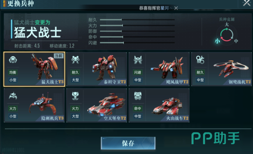游戏的兵种类型虽然很多,但是大致是可以分为三个兵种的,首先就是大体型兵种,其中代表性的兵种就是泰坦守卫以及空天堡垒,这类兵种的优势就是火力很猛,并且自身提供的护甲也足够厚,可以承担输出以及防守的能力,代价方面就是移动速度很慢,基本上不能短时间更换位置。