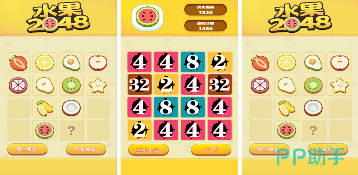 这款水果主题的2048合成游戏美术表现耳目一新,清新唯美的合成特效跟可爱水果完美结合,玩家亦可在数字和水果的图标上随意切换,不断合成水果或者数字执行闯关任务可玩性更高,解压悠闲的气氛呈现更符合2048的基础设定,没有倒计时、道具或者步数的设定玩起来也相对自由,最后合成出大西瓜或者2048数字就可以通过关卡了。