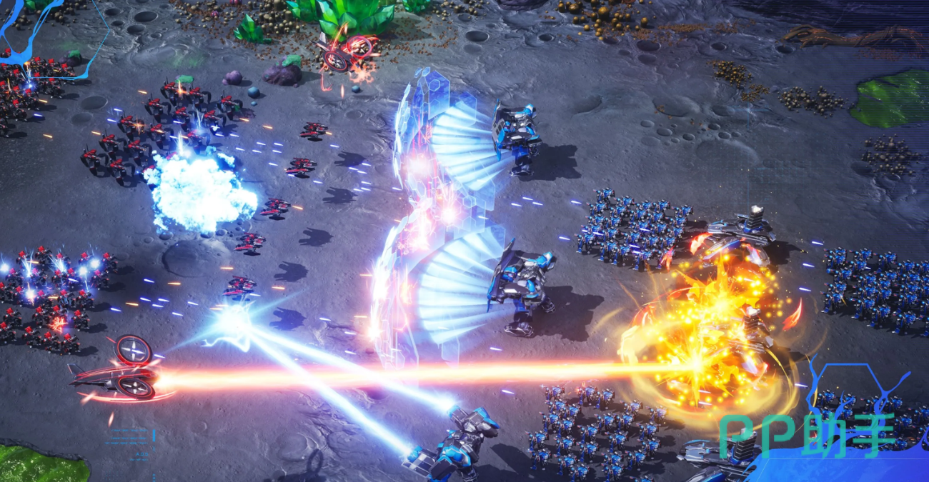 接着就可以开始自动战斗了,家园的血量会随着战斗的进程不断降低,只要在家园的血量消失之前,将对面的军队歼灭那么据点守护就会获胜,而且防守方有优势,有塔防炮台进行全面守护。