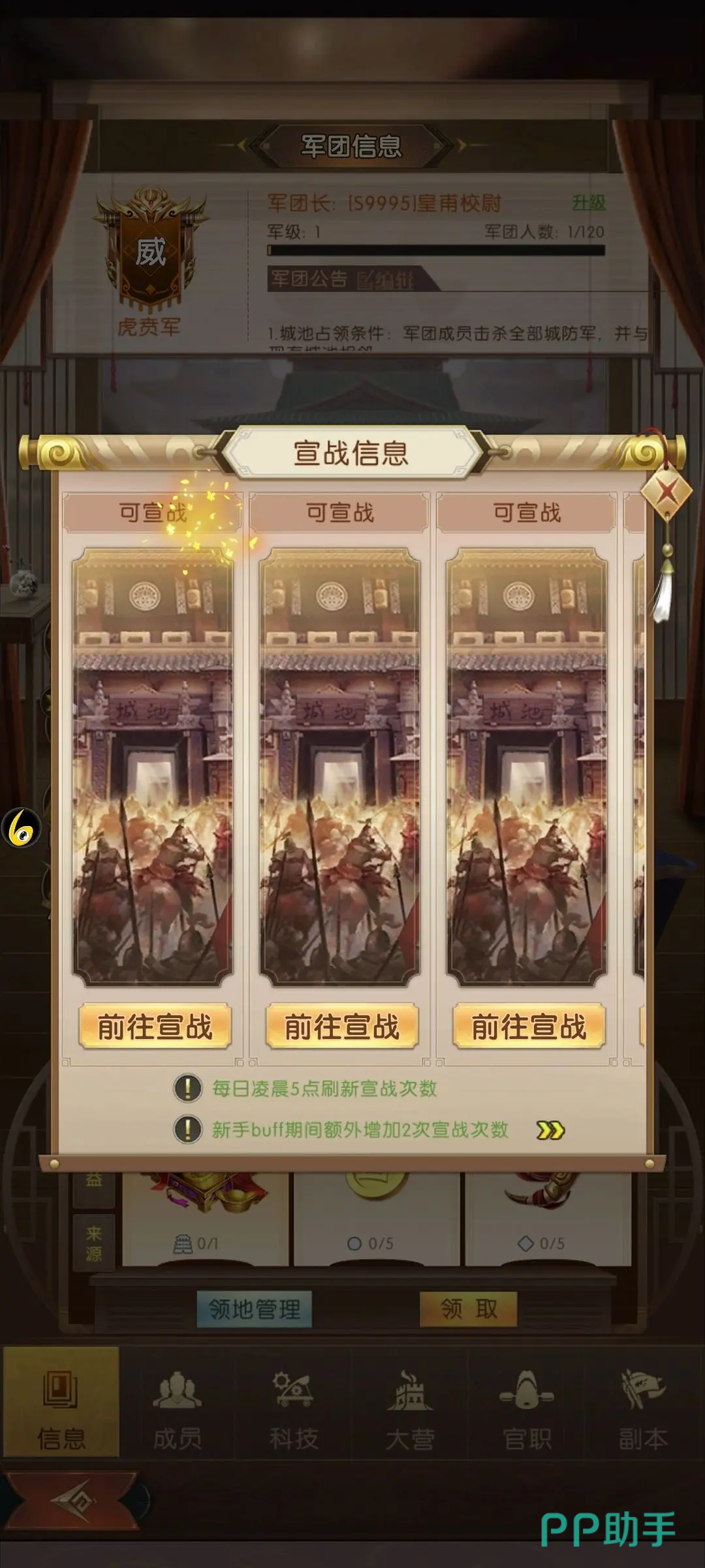 军团的核心玩法围绕城池争夺战展开。每周根据历史战役剧本开放特定战场,如赤壁赛季的火攻加成或官渡赛季的资源掠夺,要求成员合理分配兵力与战术。军团长可调配多支队伍奇袭、驻防,利用地形优势形成包围网。例如虎牢关战役需克制骑兵冲锋,赤壁之战需提前布置火攻陷阱。