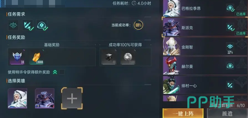 贸易任务有稀有度区别,稀有度越高基础奖励约好,当然耗时越长,所需的英雄数量也会增加。能否完成任务会有一个成功率的设定,这个需要上阵英雄满足贸易所需的特质,这样才能提升成功率。不足100%有几率失败,达到100%则还有额外奖励。