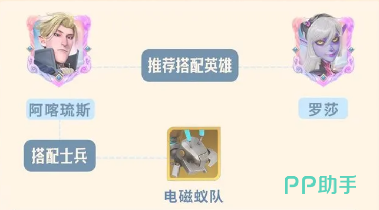 第二套推荐搭配的英雄是罗莎,士兵选择电磁蚁队,这个队伍以阿喀琉斯作为核心输出,配合罗莎提供的强力增益效果,当敌方的单体伤害较低时,这套搭配是非常占据优势的。