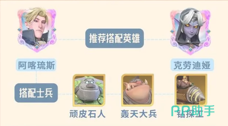 上阵英雄搭配方面,可搭配克劳迪娅,士兵可选择顽皮石人,轰天大兵,钻探工,这套搭配可以施加控制并扰乱敌方的阵型,当敌方的陆地单位较多时,更适用该阵容,注意这套阵型是比较被空中单位所克制的,能对敌方后排角色造成较为明显的威胁。
