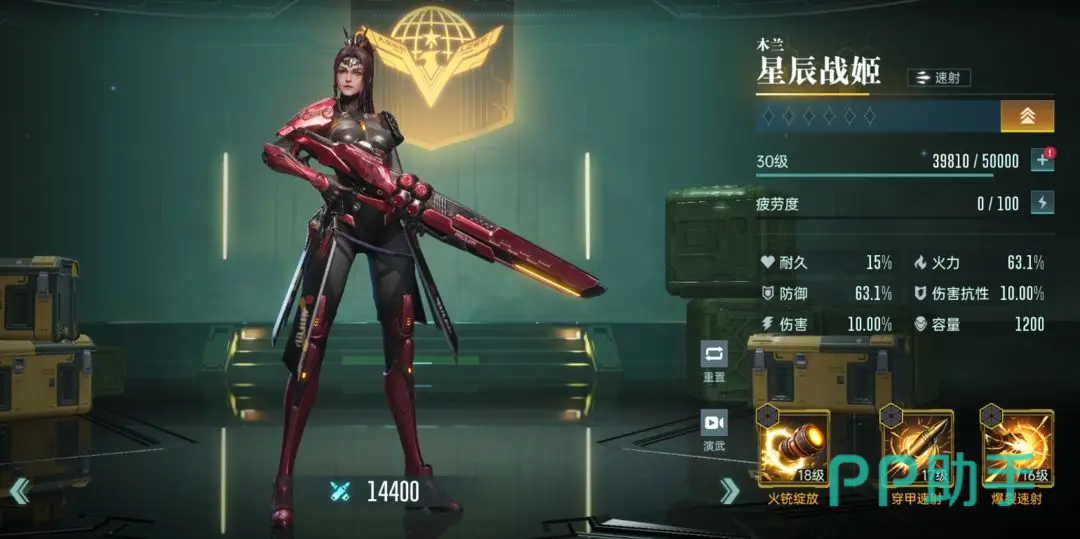 1、木兰,她是速射队伍T0的英雄,核心技能“火铳绽放”,给到了开局5秒的免控效果,同时有40%的几率展开速射,这个几率可能没有概念,但是其他所有速射英雄提供的速射概率都只有25%,而且她速射伤害的10%还能转换成自身耐久,这样一来又增强了她自身的续航效果,该机制就是她登顶速射对的根本原因。