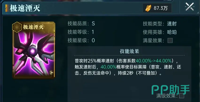4、哈珀,她是该体系最后1个S级英雄,在队伍里的定位偏向控制,核心技“极速湮灭”,提供一定概率让对手进入黑障状态,极大的提高了本体系的生存能力,其实也是变相提升了输出伤害效果。