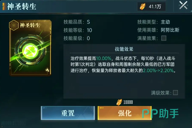 米迦勒,主动体系中最为特殊的英雄,并不提供治疗,而是专注于战斗属性加成。核心技“天使圣芒”能够提升自身耐久,同时每10秒有概率提高自身及周围友方军团的闪避率和防御属性。由于米迦勒是紫色英雄,获取难度较低,满星后技能触发概率可达100%,稳定为队伍提供属性增益。