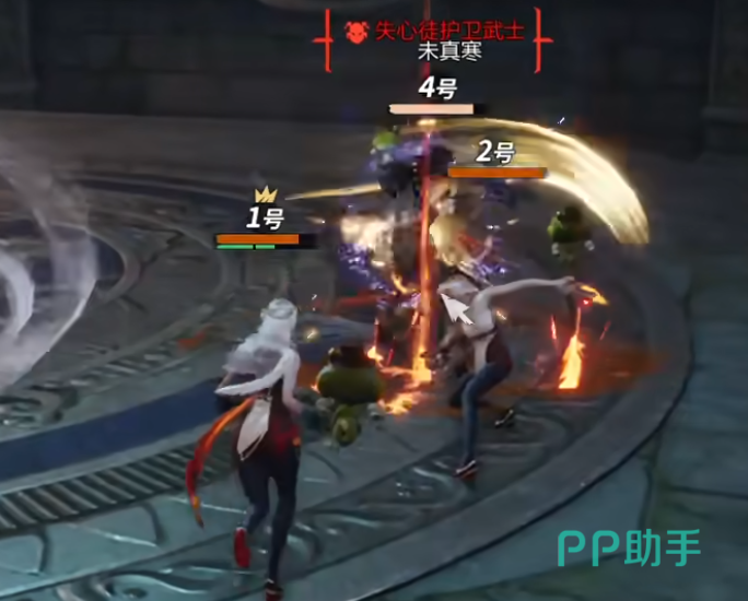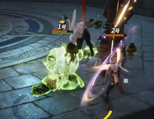 一定不能让这技能打到队伍中,随后将小的打掉一定状态后它就会跳到场中释放三次拍地板技能需要躲避,之后它会进入到虚弱状态,需要在该状态下输出,打完后需要回头去打小的boss,然后无限循环击杀它们两个。