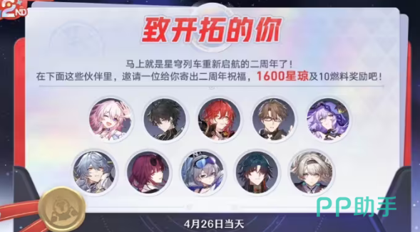 今天小编给大家带来的是崩坏星穹铁道3.2周年庆福利有哪些的内容,在游戏中每一个版本的更新都是玩家获取福利的重要渠道,随着3.2版本的更新来临,海量福利帮助玩家提升实力,每一项福利活动都蕴含着惊喜与机遇,各种基础资源可以填充玩家的资源库,接下来小编总结了有哪些福利的详细资料,希望可以帮助到玩家,接下来就一起来看看吧。