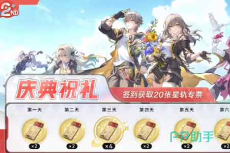 首先给大家介绍签到与登录福利,庆典祝礼签到活动期间,每日登录游戏便能轻松收获签到奖励,累计签到满七天,即可将20张星轨专票收入囊中,这是抽取心仪角色与光锥的关键道具,大大增加了玩家获取强力角色和武器的机会,登录福利需要在游戏的周年期间登录才能够领取,其中包含1600星琼以及10罐燃料。