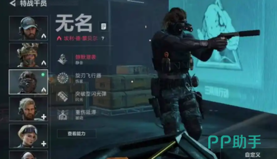 角色除了优秀的战术道具之外,自身还会带有名叫寂静无声的战术装备,这个装备其实就是干扰器,角色出现的地方,附近的敌人都会受到声波的影响,一旦受到影响之后,使用其他的道具也没有办法侦察出这个角色所在的位置,非常适合在游戏过程中记住这个角色,突进到对方的领地范围,不用担心因为产生声波造成角色位置暴露。