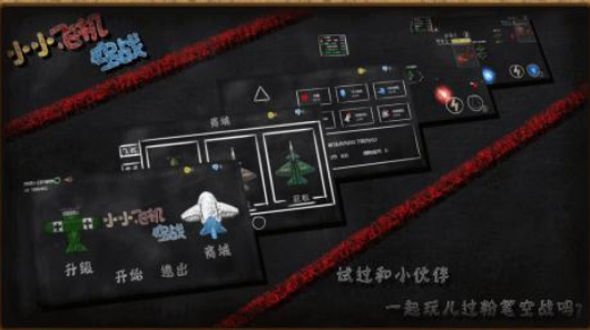 在这款以小小的飞机展开的飞行战争游戏,有创新的玩法,因为它是可让你在黑板上玩飞机大战游戏的,通过在黑板上使用画笔,画出战机的方式,就能展开激烈的空战。游戏中除了涵盖丰富的小飞机类型,大家可以选择,也能在这里面使用高速飞行的方式,去袭击敌人,使用发射的导弹,更能对敌方造成强大攻击,在玩的时候也要躲避敌方子弹。