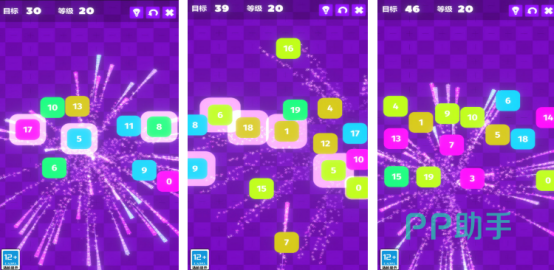 简约的画面,玩家将会沉浸在数字的世界当中。在每个关卡中都有具体的分数要求,玩家在开局后将会看到各种色彩缤纷的方块,通过滑动屏幕的方式,就能形成更高的数字,并且实现目标的要求。关卡的难度也会随之增加,玩家可通过逐渐解锁的方式挑战自我。