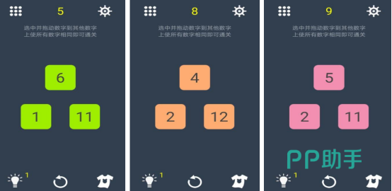 基于数学的知识进行打造,简单易上手的操作方式,每个关卡当中所呈现出的题目类型都完全不同。其实此游戏比较考验玩家的口算能力,因为在每个关卡中都会呈现出不同的数字,如果出现双数,那么在分数字的时候必须分出一半给另一个数字。但如果是单数时,那么就需要将这个数字全部给另外一个数字,看似非常简单的操作方式,但其实对于玩家来说充满着无尽的挑战性。