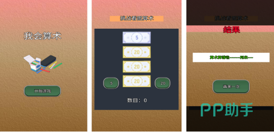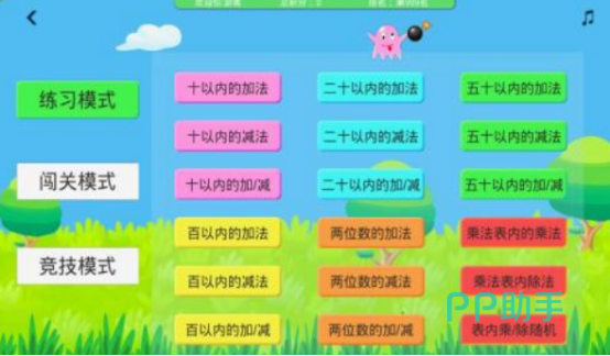 色彩丰富的画面专门为更多小孩子进行打造,这里涵盖了加减乘除的算术方式,还有混合运算的题目等等。几乎涵盖了小学中经常遇到的口算算式,玩家可通过玩游戏的方式提高自己的计算能力。除此之外还有比较大小的题目等等,这里还涵盖了三种不同的模式,有练习模式,闯关模式以及竞技模式。