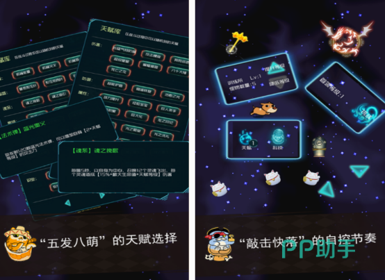 此休闲游戏中的玩家,将置身于以太空环境为主的猫咪游戏中,里面的太空喵会遇到很多的怪物,需要根据不同的怪物强度,利用技能将其打败,使用的是唤境引擎进行制作,所以它相对于普通的游戏,在玩法上也是很独特的。会看到游戏所设置的环境,采用黑色的画面进行设计,完全就像是在宇宙里面一样,需要小猫咪做好天赋的选择,控制好节奏。