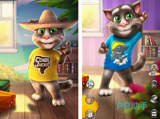 这是你可在手机上领养汤姆猫的休闲手游,除了它的样子给大家留下深刻的印象,作为一只宠物猫,它也能像日常生活中真的猫咪一样,给大家带来快乐。在说话的时候主要就是复述玩家所说的话,只不过在说话时它的声音非常搞笑,带给大家无限的乐趣。点击屏幕上的各种操作按键,就可让它做很多的事情,比如吃东西或者是更换衣服。