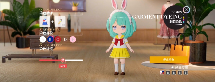 具体的染色流程也是比较简单的,首先确定要染的颜色,其次选择好染色的部位,接下来确定展开染色就可以了。在进行染色之前,也是能提前预览到对应服装部分的效果的,在觉得满意之后再展开染色比较好。