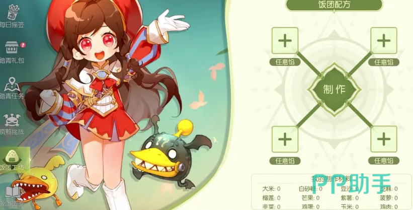 “饭团工坊”是利用饭团制作材料的地方,在活动期间就能看到饭团工坊页面,我们可以在其中放入任意获得的材料,再加入必备材料大米和白砂糖,就能解锁出不同饭团。