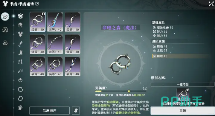 装备对于我们的能力影响很大,越好的我们的实战效果就会越佳,目前游戏装备品质为绿色、蓝色和紫色,大家可以在装备界面,对获取来的装备进行重铸、精炼和分解等操作,重铸需要消耗一件同样的装备,让其基础属性数值刷新一次,界面上面的完美度是评价一件装备的直观数值,最高为100,随着重铸次数的提升,装备的完美度会不断接近100,此时给我们带来的提升就会越好;