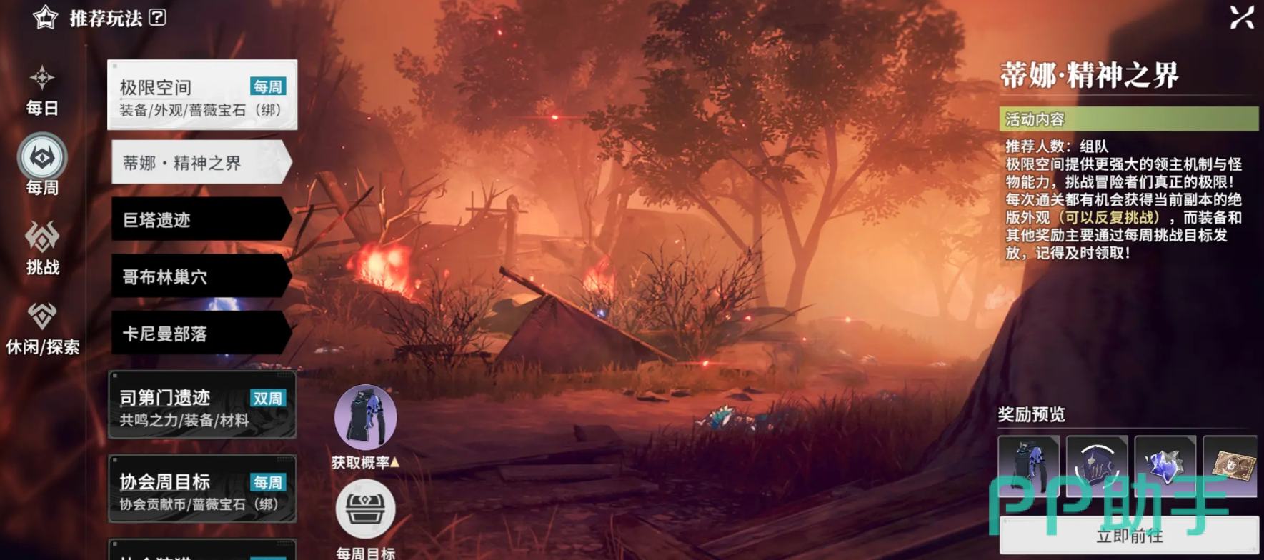 除了主线外,每天完成各个玩法也很重要,首先是每日讨伐首领,进入会在野外出现各种首领怪物,通过每日发放的钥匙,能打开击败首领后的宝箱,拿到丰厚奖励并且击败怪物还会有额外掉落,推荐组队参与,不稳定空间需要前往调查处,探索机械的秘密,这个玩法不管是组队和单独冒险都可以,并且还是装备的主要获取突进,记得每天参与;