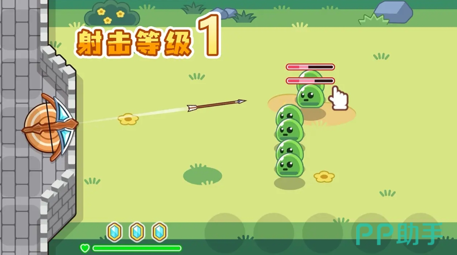 在这部游戏里,玩家们成为城防上的弩箭手,需不断地调整弩箭的方向,将来犯的魔物击败,来获得金币为弩箭升级,令它拥有毁天灭地的本事。这部游戏体验起来很是休闲,并且玩起来甚至不需要网络,人们只要手机有电就能打开它进行体验。而且它的关卡无穷无尽,只要城防不被魔物攻破,就嫩一直操控弩箭继续与魔物对抗。