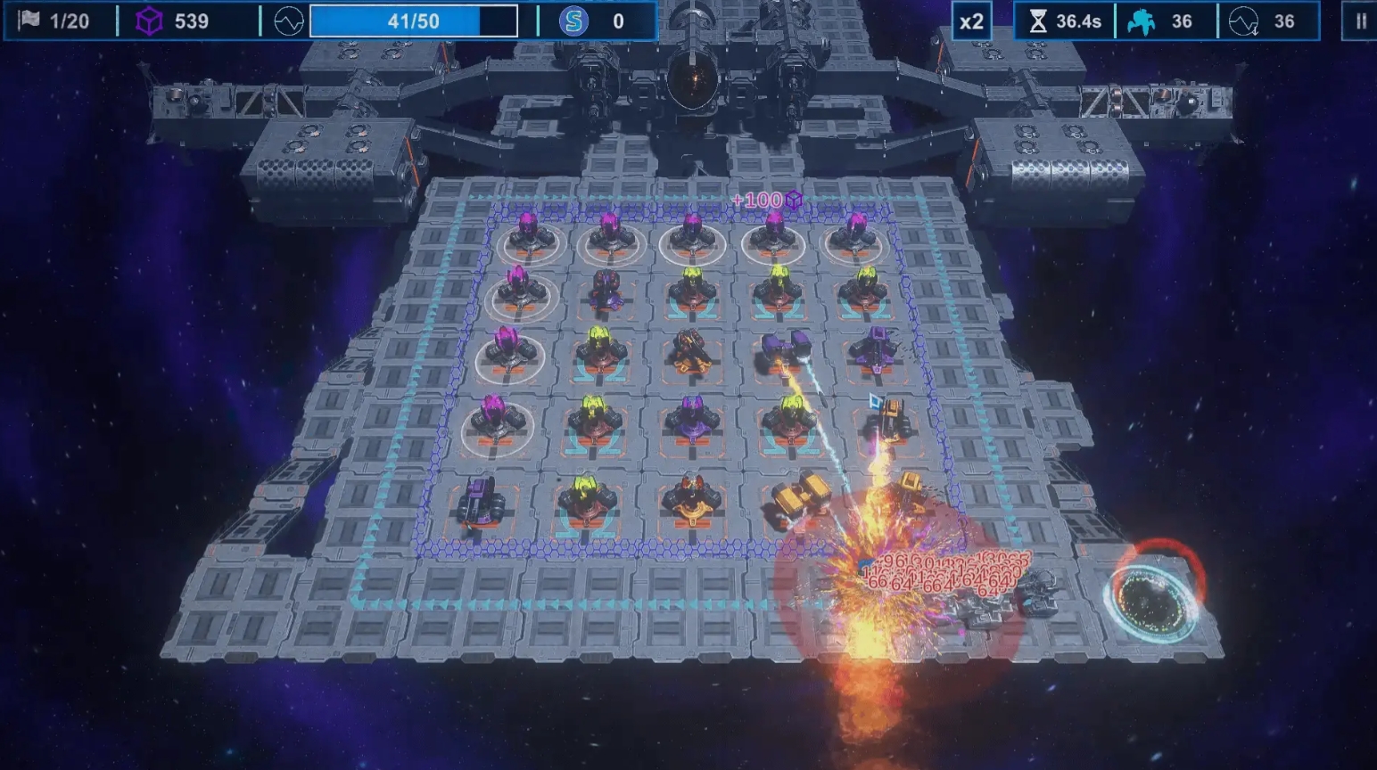 游戏有着很直观的玩法,人们需要在5*5的方格内布置自己的跑塔阵线,来消灭顺着外圈行走的敌人,是一部以循环圈形式为主的塔防作品。它的特色是敌人在循环一圈后并不会消失,而是接着继续循环,直到被玩家们所消灭为止,但要注意当敌人循环够一定的圈数后或是外圈的敌人数量达到一定标准,玩家就会被判定为失败,玩法很新颖。