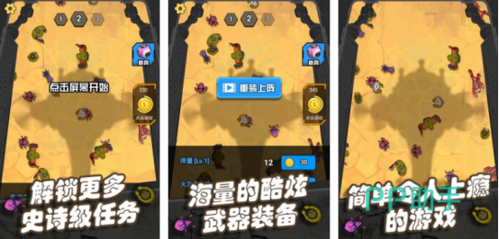 以僵尸为主要题材所打造出的动作射击类手游,您将要在这里控制其中的人物角色,通过合理走位以及正确选择武器的方式疯狂横扫全场,将蜂拥而至的僵尸大军全部消灭就可以此获胜。僵尸的行踪比较诡异,经常会隐藏起来,趁玩家不注意时就会对其进行攻击,体验游戏时千万要集中注意力,时刻观察周围的环境,不能和僵尸发生碰触,否则就会被其吞没。