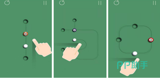 简约的画面,无需联网,也无需花钱就可以实现碰球的无尽欢乐,其实此游戏和人们现实生活中玩的台球特别相似,只不过操作方式极其简单,玩家要通过瞄准并掌握合适的角度和力度,点击白球向其他颜色的球球进行撞击,以此利用巧妙的力度,将其他颜色的球球撞击到洞中就算成功。游戏中所有的难度也是逐渐升级,玩家可挑战自我。
