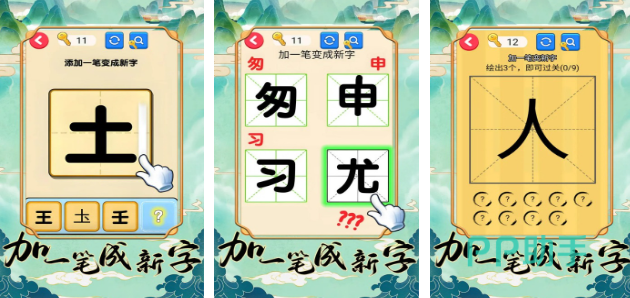 游戏中会有一些独特的玩法,并不是简单的加一笔,而是需要在原本的文字中拿掉一笔,然后再选择加上一笔。在经过组合之后就会形成一个新的字,这个游戏整体的操作是比较简单的,不过难度也会稍微的增加一些。对玩家而言,这个游戏就会有趣味性的挑战,需要大家去开动脑筋,才能有机会创造出一个全新的汉字。