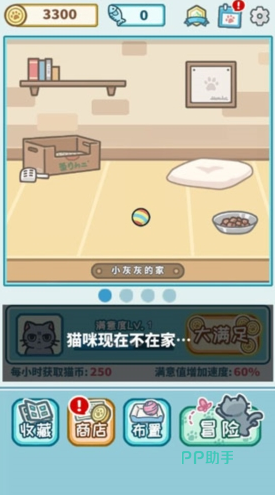 这款游戏以它那温馨而又萌趣的画面设计,让人一眼便感受到满满的亲和力与趣味性,巧妙地将解谜与养成元素融为一体。整个游戏体验就像是一场温馨的旅程,引领玩家步入一个充满治愈气息的小猫咪世界。游戏精心设计了多个趣味关卡,要求玩家协助机灵的小猫咪巧妙地避开游戏中的大叔和主人的注意。此外,在照顾小猫咪的同时,大家还有机会亲手装扮它们的生活环境,增添更多个性化的色彩。