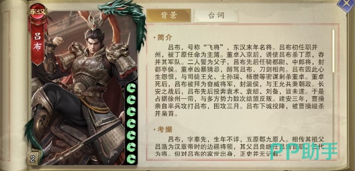 吕布作为东汉末年的杰出将领,威名远播,初始体力值便达到满格7点,这在游戏中极为罕见,代号杀吕布怎么样也是大家首要选择了解的武将卡,目前游戏中达到这个体力数值的只有这一个武将,但是很多玩家在前期体验的时候都说这个武将卡除了这一点优势之外,其他的比较弱,到底是不是这样大家就一起来看看吧。