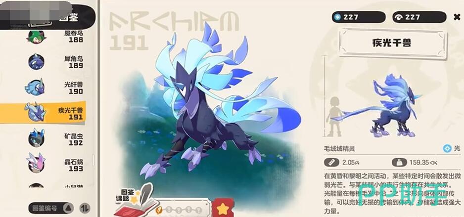 首先就是获取,其实游戏第一阶段测试的时候,月开会送一只疾光千兽,也就是月光队战令解锁,购买战令后需完成周常任务提升战令等级至30级,获得“光系吸引果实”。前往地图“眠枭庇护所”使用果实,概率刷出犀角鸟或光纤兽(推荐抓犀角鸟,进化成本更低)。犀角鸟需投喂“星光蜜露”(活动兑换或者直接氪)进化为光纤兽,再消耗50个“光之结晶”(本里会掉)进化为疾光千兽。若直接抓光纤兽,需准备至少10个高级咕噜球(推荐紫色品质)提升抓捕成功率。