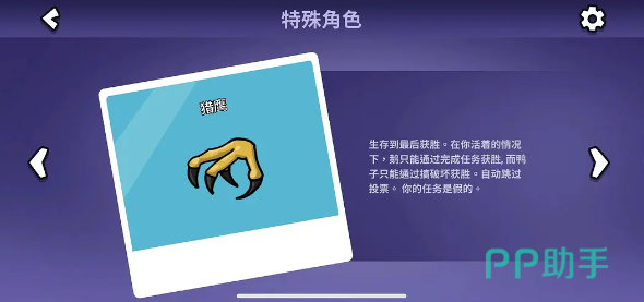 猎鹰:生存到最后则意味着获胜,主要的技能就是带刀,可以自动的跳过投票,获胜的条件还是比较苛刻的,需要注意细节,才可以成功。