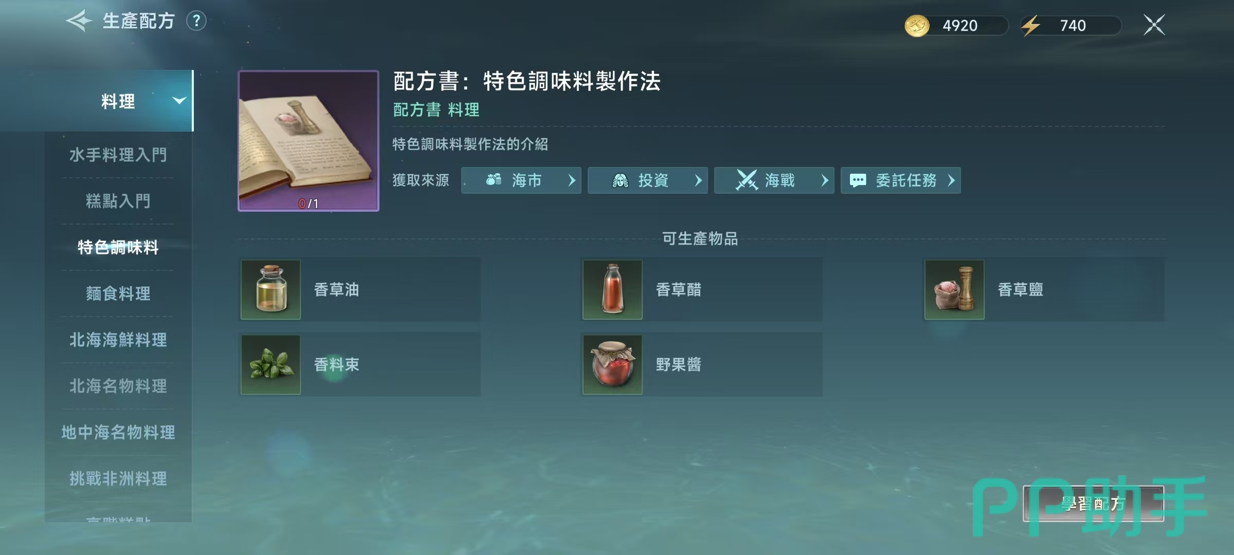 这些生产配方都需要大家通过不同的途径去解锁,其中水手料理入门和糕点入门,只需要在出生地港口就可以直接购买到。而其他的配方书,则是需要在指定地方或者是通过相应任务才能获得,例如通过海事投资、海战或者是委托任务等,都有几率获得这些配方书。在学习了对应的配方书之后,就可以打开进行对应美食烹饪。例如在水手料理入门中,可以制作水煮蛋,酥油面包,水果拼盘等,都是最基础的烹饪。