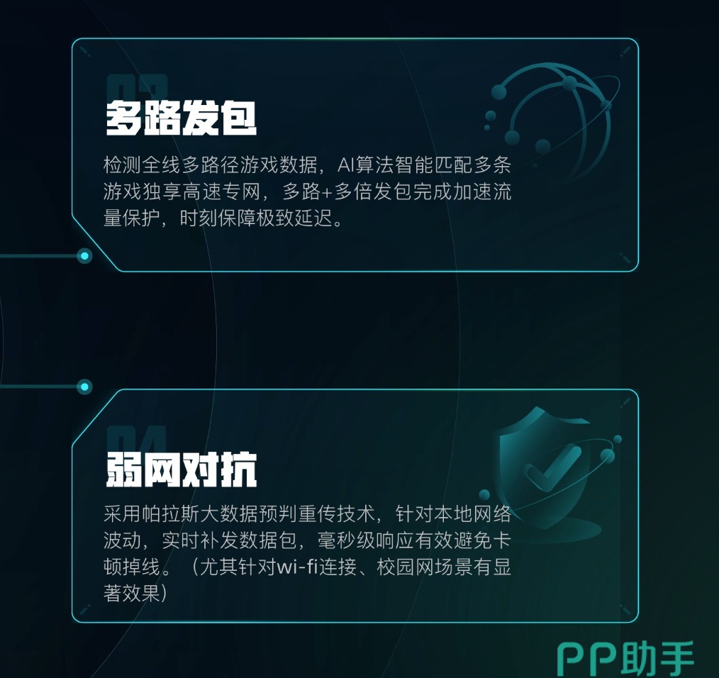 Biubiu加速器拥有全球高速专网通道,结合多路发包技术,用AI算法分析游戏数据并匹配最优路径,能够有效降低网络延迟,提升下载速度。同时,它采用大数据预判重传技术,监测网络波动并补发丢包数据,保障弱网稳定,运用动态多线技术,定位服务器位置,自动规划专属高速通道,确保全球游戏低延迟、高稳定性连接。