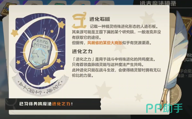 想要获得带有首领血脉的宠物,玩家可以选择去游戏里攻击精灵首领,这要通过对战,精灵首领就会掉落一个蛋,玩家把这个蛋孵化出来,就能得到带有精灵血脉的宠物,如果想要获得进化之力,那就需要去远古魔法录摘录里领取,在这里能获得进化石版,这个石板通过学习之后,玩家就能得到进化之力,通过这个进化之力可以和首领血脉经营产生共鸣,然后精灵就会拥非常强的战斗力。
