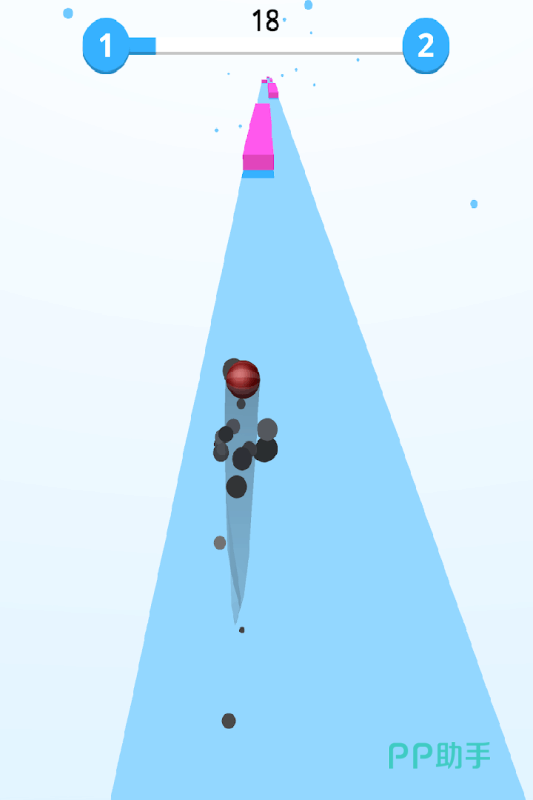 玩家需要操控一颗彩色小球,在充满各种障碍和弯道的赛道上快速前进。游戏最大的特色在于"球球融合"机制——当你的小球碰到同色球体时,会合并成更大的球体继续前进;但如果不慎撞上异色球体,游戏就会立即结束。这种简单却富有策略性的玩法,搭配上鲜艳明快的视觉风格,让游戏既容易上手又充满挑战性。