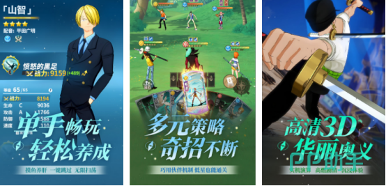 根据人气超高的航海王进行改编,也是由官方正版授权进行创作,以3d的高清画面进行打造,这里涵盖了很多优秀的航海王角色,比如有人们耳熟能详的路飞等等。您可以和更多小伙伴共同并肩作战,在航海的大世界当中任意驰骋。游戏还以竖屏的方式进行展现,无需太复杂的操作方式,利用单只手就能完成挑战。