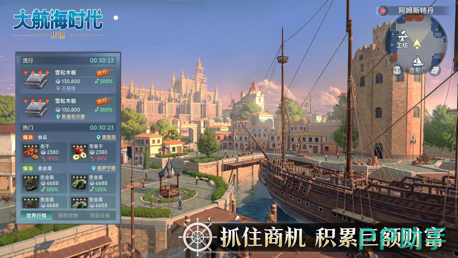 这款航海主题手游,将玩家真正带回了那个波澜壮阔的中世纪大航海时代,可以沉浸式地扮演一名航海家。游戏中需要掌握的知识非常多,包括地理、航行、贸易、海战、探险等,还可以和其他人一起合作,这样才能成为一个真正的海上霸主。玩家在游戏中,将体验从零开始组建一支舰队的乐趣,在探索过程中,会不断发现新城市、新风景和新贸易商品。在这个过程中需要考虑的问题很多,例如如何使得收益最大化,如何去改造和武装船只进而达到较高的战力等。所以是一款非常重视策略的游戏,不仅仅是简单地完成任务就能达到目的。