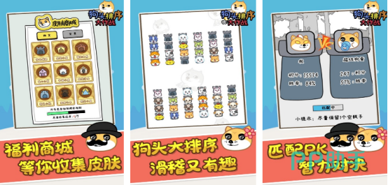 简约的画面,给玩家带来了极强的视觉冲击力,也会让玩家的心情变得非常愉悦,在这款游戏中玩家最主要的任务就是通过闯关的方式将狗头放在同一个区域,看似操作方式特别简单,但是却比较考验玩家的思维能力,在每个关卡中如图所呈现出的位置是完全不同的,玩家要通过合理排序的方式完成挑战。