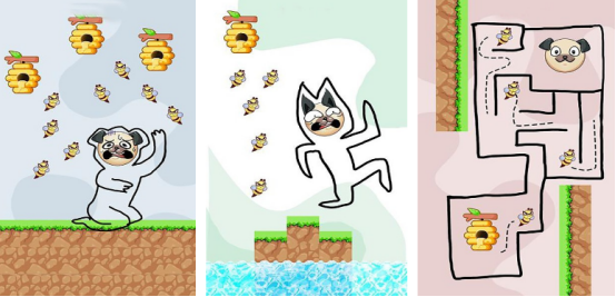 基于闯关玩法为核心,这里设置的关卡内容特别丰富,所有的难度也会逐渐升级,核心的要求就是玩家通过划线的方式完成闯关,在每一个场景当中都会遇到不同的挑战和障碍物。主要讲述的就是有一大波的蜜蜂一直在遮狗头,而玩家要通过划线的方式保护好狗头,千万不要被蜜蜂蛰住,简单易上手的操作方式却比较考验玩家的智慧头脑,需要合理规划,顺利完成挑战。