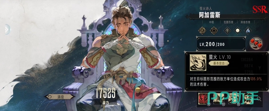 在银与绯这款游戏中,阿加雷斯作为一位SSR角色,称号苍火诗人,看过他的技能大家就会知道这个角色的技能也是充满了诗意,银与绯阿加雷斯怎么样是需要从一个个技能挡住来看的,只要大家会利用他的技能,几乎可以在使用这些技能的时候直接改变战局,他在范围输出上面还是有不错的效果。