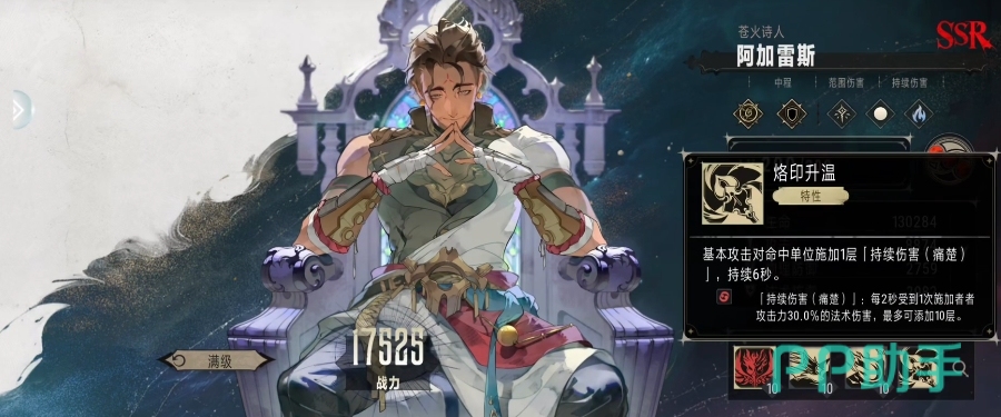 阿加雷斯这位独特的角色,还有一个特性烙印升温,这个特性使他在面对承受持续伤害效果的敌方单位时,能够发挥出更强大的战斗力,具体表现为对这些敌方单位造成的伤害将提升20.0%,这一特性不仅增强了他的输出能力,也让他成为了战场上对抗持续性伤害敌人的关键角色。