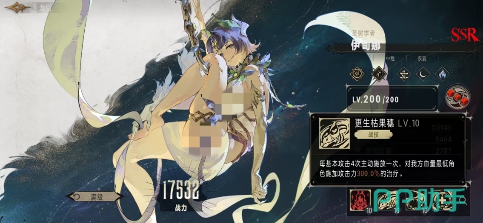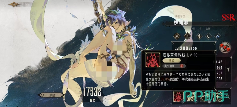 而且这 5次治疗并非固定作用于同一个单位,而是在每次进行治疗时,都会重新进行判定,智能地选择当前生命值最低的友方角色作为目标,这种灵活的目标切换机制,使得整个队伍的血量都能得到大幅提升,无论是哪个队友处于濒危状态,都能及时获得关键的治疗支援,在自身特性的加持下,伊甸娜的奥义技能还拥有额外的效果。