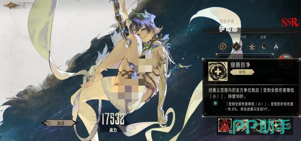 当奥义技能释放后,其笼罩范围内的所有友方单位,都会获得一个小型的伤害降低效果,此效果能够持续 10 秒的时间,在这 10 秒内,这些友方单位受到的所有伤害,无论是物理伤害还是法术伤害,都会被降低15%。,一特性进一步巩固了伊甸娜在团队中的辅助地位,她不仅能通过强大的治疗能力保障队友的生存,还能凭借减伤效果提升整个队伍在战斗中的容错率。