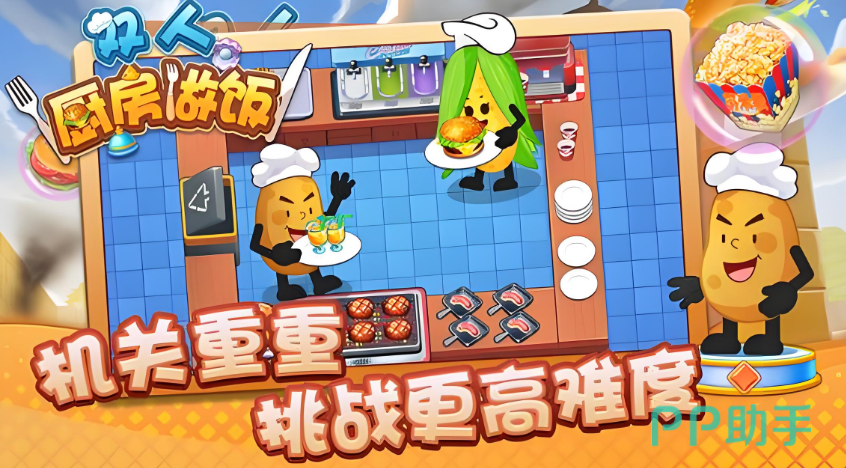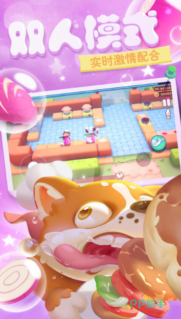 这是一款支持合作烹饪的趣味手游,把玩家安排在了一个充满坎坷命运的王国中,只有通过烹饪才能拯救国家。玩家可以在各种精美的烹饪场景里完成不同的菜品,惊险的海盗船或者阴森的鬼屋,都是和对手挑战的主题场景。本手游可以同时容纳四人以下进行合作共创菜品,极其考验玩家对于游戏做菜流程的熟练度和默契能力。