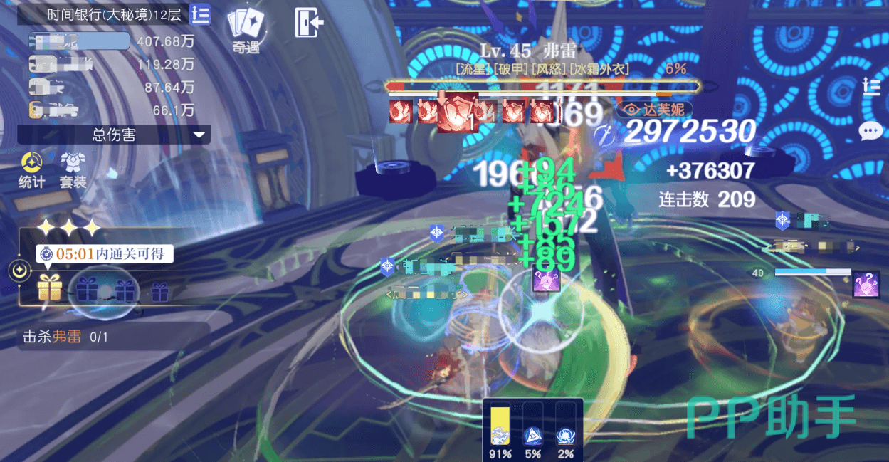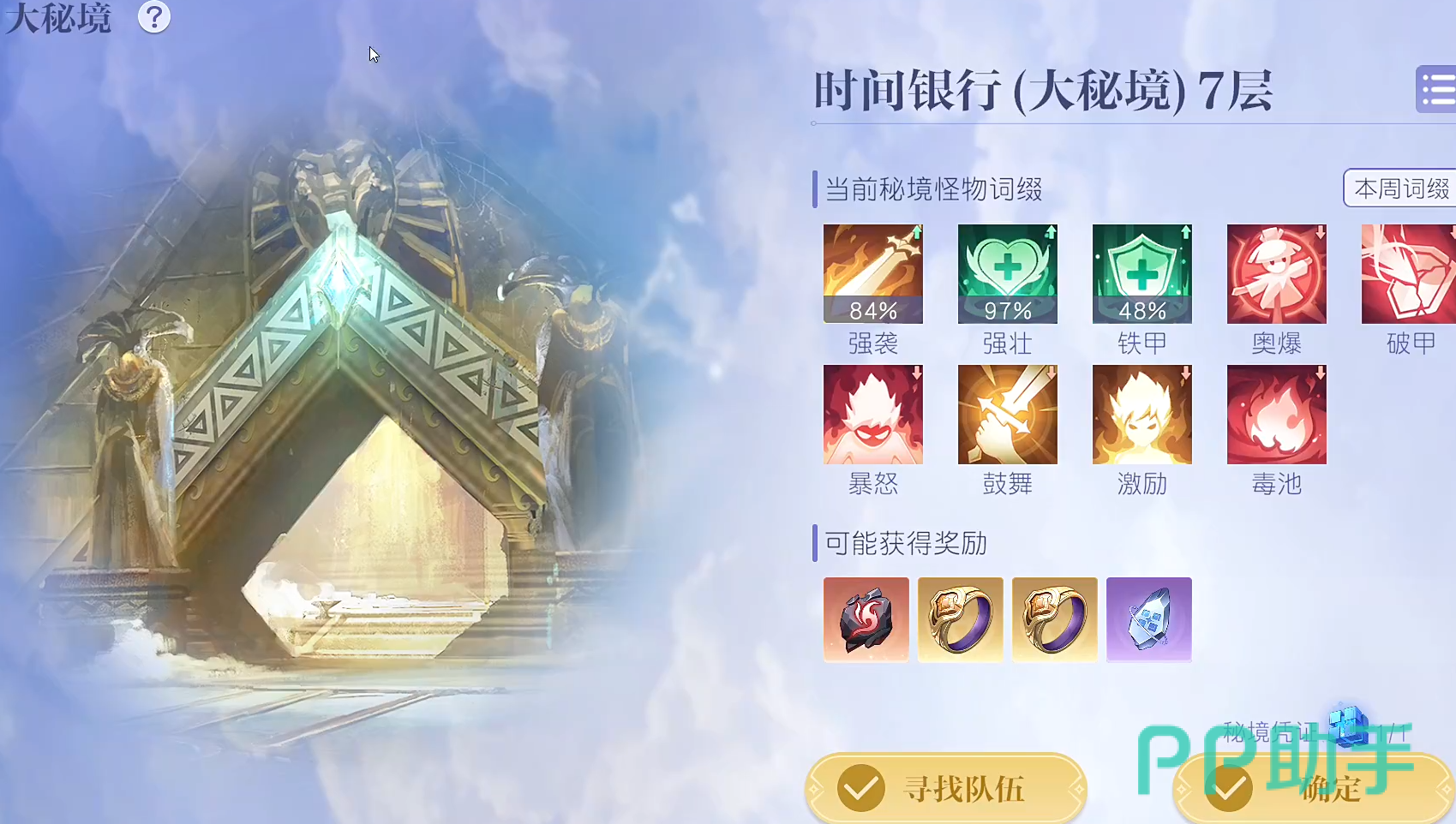 副本大秘境7层以上会掉落54级的顶级散件,但是想要掉装备则需要三星,所以应当以三星为目标,建议血量在2w以上闯关,如果不够可以适当装备血宝石或者高等级的防具,2w4以上最好,这样能确保在中大部分技能后不直接死亡,极大提升容错率,此外建议把小地图右上角的dps统计打开,调整为每秒伤害的页面,确保团队打boss时候的总dps在5w以上,如果不够的情况下,可以适当去刷取1到3层的紫色散件来提升,这样才能成功三星。
