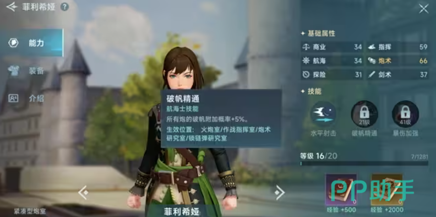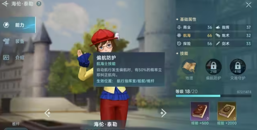 海伦的定位是跑商辅助,她的“偏航防护”能在自动航行发生偏航时,有50%的概率立刻纠正航向,大家可以将其和汉娜搭配在一起培养,这样两人能带来70%的偏航防护十分不错,她的“灾难守护”能降低航行途中负面自然灾害的发射概率,是冒险玩家的必备。