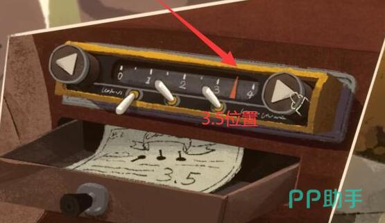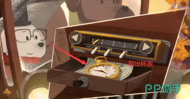 然后我们需要将钟表调制是4:50,然后出发后续剧情。后续老狗会提示需要听一点音乐,所以我们需要连续点击怀表,取出分针。然后将分针安装在破坏的收音机上面。后,需要手动旋转到正确位置。这里容易踩坑:收音机上有多条刻度线,但实际要对准的是隐藏的“3.5”位置。调的时候长按指针往右拖,听到背景音乐自动播放即可。