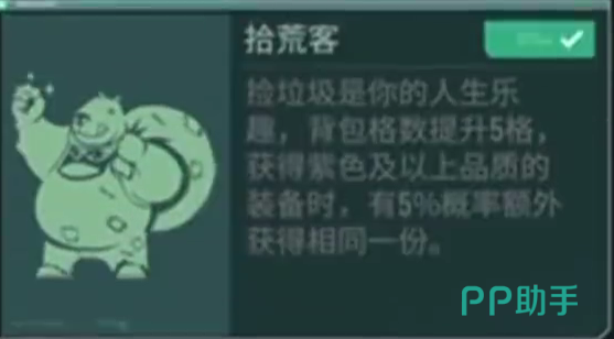 拾荒客的技能能够将玩家的背包进行扩容,这个扩容还是永久性的。在基础的背包上增加了5个容量,并且在玩家开箱和收取资源时稀有物品的概率高,会有移动速度的buff叠加。保安职业为玩家提供的是防御力。